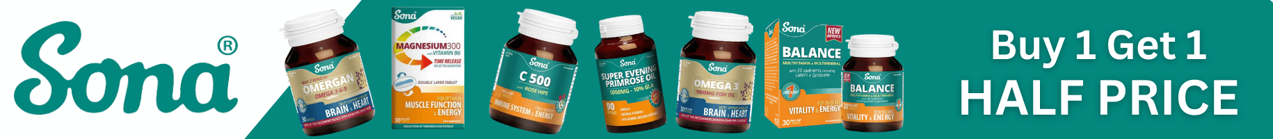 Sale Sona Pmt Pack 30 + 30 €13.30 Buy One Get One Half Price on all Sona! Just add to cart and discount will show at final stage.