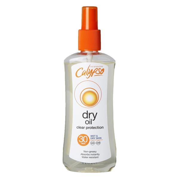 Calypso Clear Protect Dry Oil Spray absorbs instantly and is specially formulated for use on both wet and dry skin. It is water resistant and provides all over body and scalp protection from both UVA and UVB rays. Not only is it easy to apply, but it is also dermatologically tested to help prevent premature ageing from the sun's harmful rays.