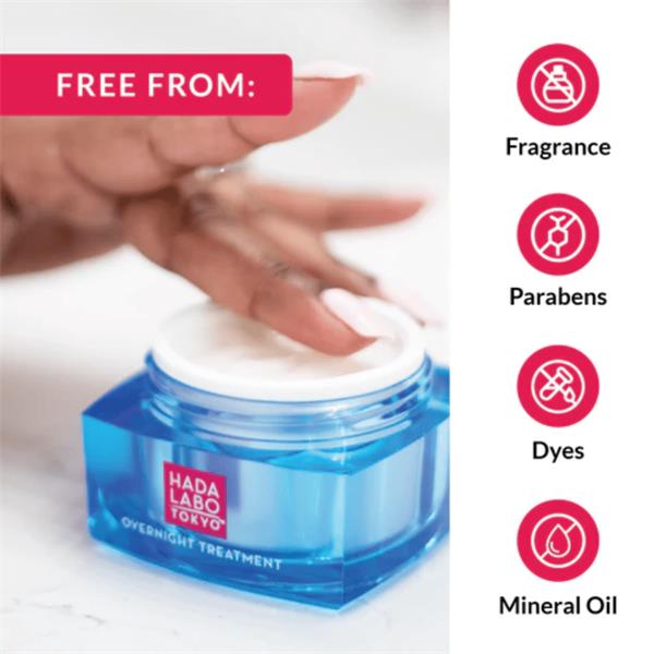 Recharge your skin while you sleep with Hada Labo Tokyo™ Anti-Aging Overnight Treatment. Formulated to hydrate, repair and firm skin, this anti-aging treatment contains Super Hyaluronic Acid™ for long-lasting moisture to restore and strengthen skin's natural hydrating levels, a soy peptide complex to help fortify skin's structure and reduce the appearance of fine lines and improve loss of elasticity, and collagen for improved texture and firmness. This hydrating face firming cream combines the repairing power of a serum with a deeply hydrating cream to leave your skin softer, firmer and rested while reducing the appearance of wrinkles. This lightweight face and neck firming cream is non-greasy and absorbs into your skin quickly. Massage this anti-aging overnight treatment into your skin every night.