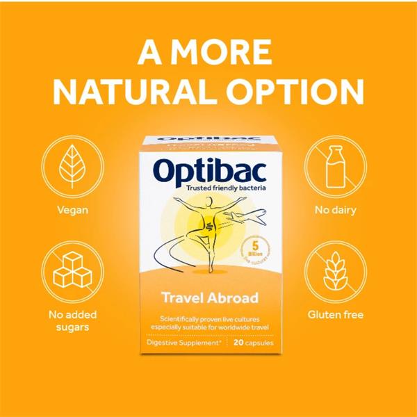 Pack your bags with confidence knowing you've got the perfect companion for digestive health. Whether you're exploring new countries or simply enjoying a change of scenery, Optibac For Travel Abroad promotes gut wellbeing wherever you go.