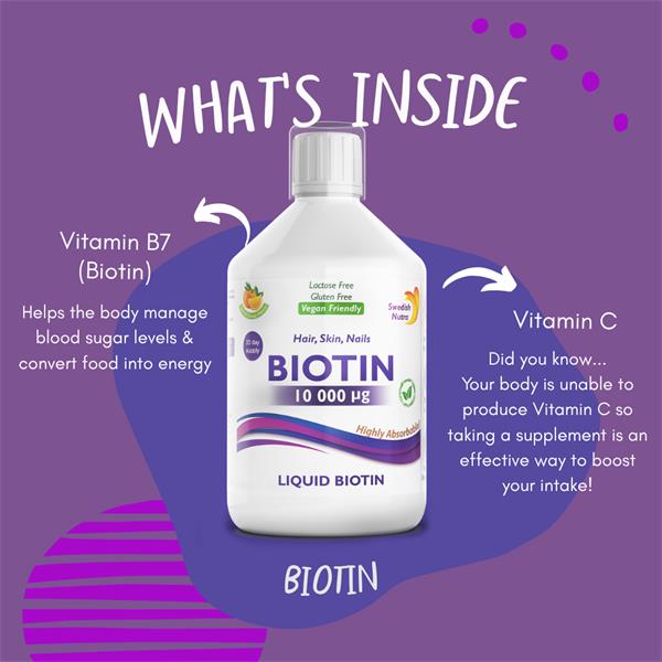 Swedish Nutra Biotin 10,000µg offers highly absorbable liquid biotin that supports your hair, skin, and nail health from within.