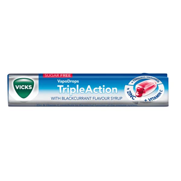 Vicks Triple Action Lozenges With Blackcurrant Flavour Syrup 42G - Sugar Free